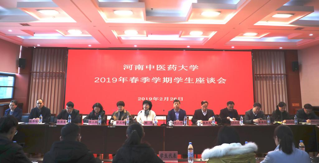 本网讯(文/张良舜 图/张金霄)2019年2月26日下午,我校在图书馆第二报告厅召开2019年春季学期学生代表座谈会。校长许二平,校党委委员、副校长田力,校党委委员、工会主席张加民出席座谈会,校长办公室、学工部、研工部、教务处、招生就业处、校团委、图书馆、后勤服务中心、校医院等部门负责人及来自全校的40余名学生代表参加了会议。会议由田力主持。