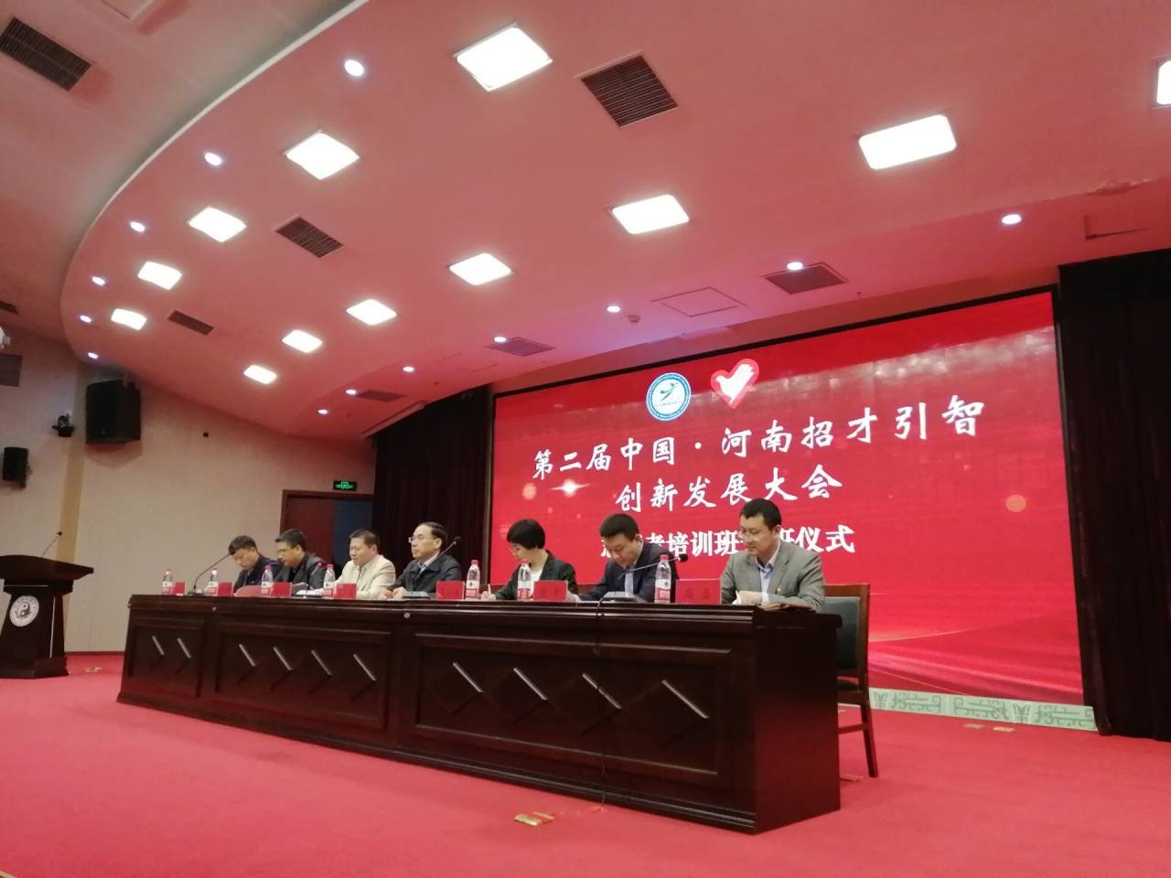 本网讯(文/邹安琪 何嘉薇 图/衣梦瑶 高雪歌)2019年10月22日,第二届中国·河南招才引智创新发展大会志愿者培训班在我校图书馆第一报告厅开班。团省委社会联络部部长李山英、副部长李刚,省人力资源社会保障厅办公室调研员盛福建、主任科员韩钰,河南财经政法大学团委书记原方、华北水利水电大学团委书记祁萌,我校党委委员、工会主席张加民,校团委书记高磊以及来自河南财经政法大学、华北水利水电大学和我校的300名志愿者参加培训。
