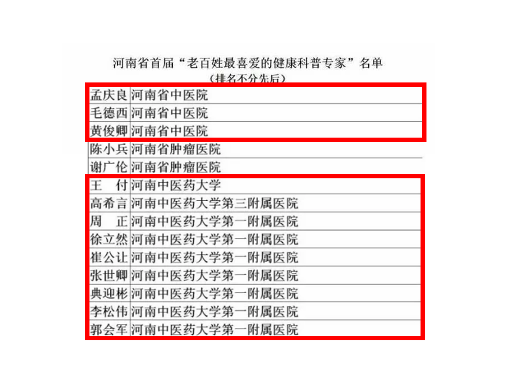 本网讯(文/李昕)2019年7月15日,国务院正式下发《关于实施健康中国行动的意见》,全面实施十五项健康行动,其中首要行动为健康知识普及行动。为科学、有效实施健康中国行动,提高大众健康素养水平,医药卫生报社于2019年11月启动河南省首届“老百姓最喜爱的健康科普专家”评选活动,478位专家积极响应参加。2020年9月1日,河南省首届“老百姓最喜爱的健康科普专家”评选结果揭晓,我校12位专家入选。