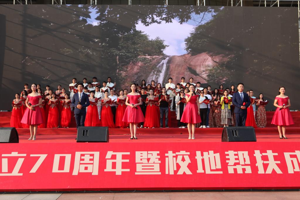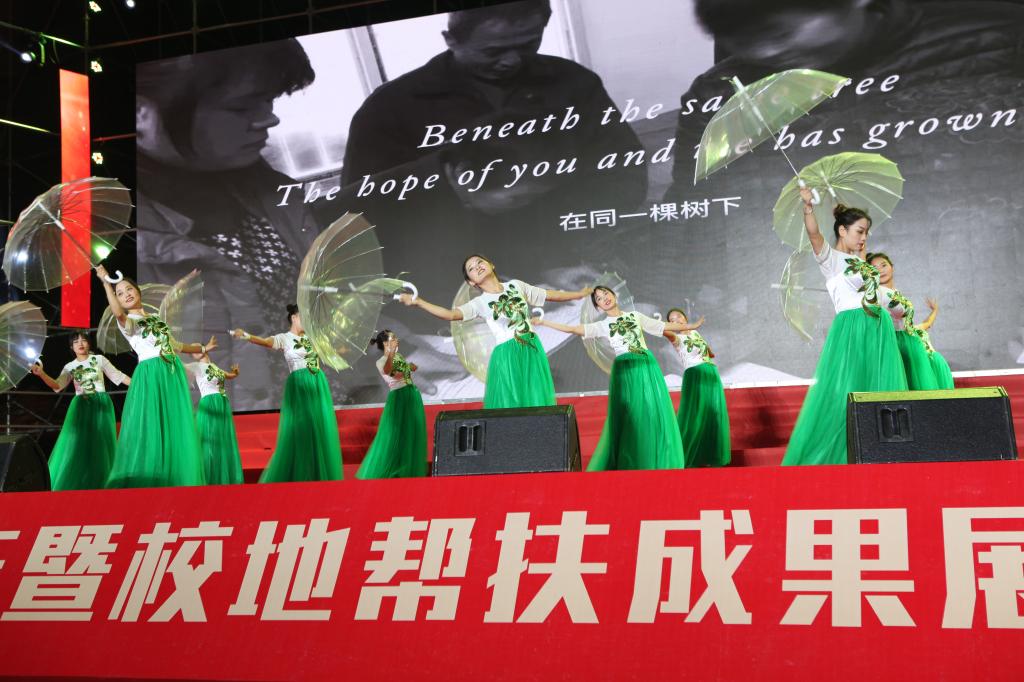 本网讯(文/郭薇 陈雨昕 邹安琪 图/张金环 衣梦瑶)盛世华诞普天庆,红色热土写华章。2019年9月28日晚,我校与新县联袂举办的庆祝新中国成立70周年暨校地帮扶成果展示文艺晚会在学校五星广场隆重举行。省扶贫办社会扶贫处处长李红军,省扶贫办社会扶贫处副处长、新县人民政府副县长臧曼,省教育厅发展规划处调研员胡万欣,省教育厅脱贫办黄军松、郭锐,新县县委常委、县委副书记尹建平,新县人民政府副县长、校信息化办公室主任赵振营,新县扶贫办主任黄成光,校党委书记别荣海、校长许二平、校党委副书记张丽霞,校党委委员、副校长张小平、徐江雁、工会主席张加民等参加活动,同庆新中国70华诞,共享校地帮扶情深意长。