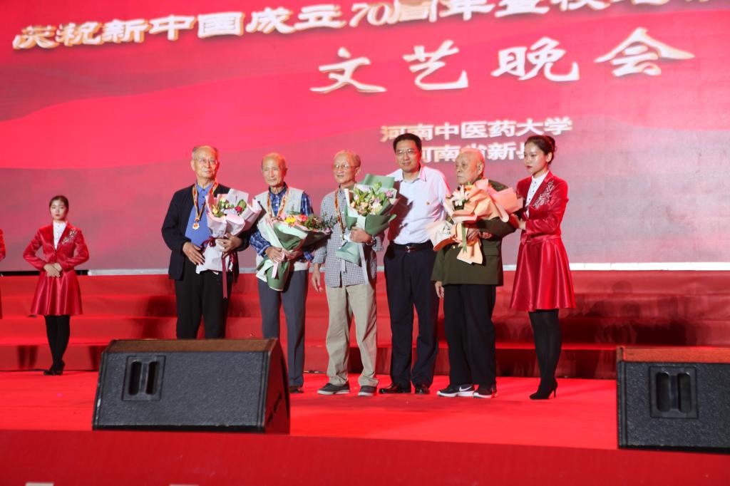 晚会以“祖国颂·帮扶情”为主题,由“忆往昔·回望初心”“一脉情·同舟共济”“新时代·祝福祖国”三个篇章组成。纪录片《仁者大爱暖山乡》拉开了晚会的序幕,一帧帧画面展现了新县数十载的沧桑巨变以及校地结对帮扶的累累硕果。第一篇章回望初心,使命不怠,展现了新县人民追寻红色足迹,团结一心奋斗的精神面貌,展现了中医本草魅力,庆祝我校药学院在发展祖国中医药事业的道路上走过的60载春秋。“天地英雄气,千秋尚凛然”。 为庆祝中华人民共和国成立70周年,中共中央、国务院、中央军委决定为中华人民共和国成立和社会主义现代化建设作出重要贡献的同志颁发“庆祝中华人民共和国成立70周年”纪念章。我校有24位中华人民共和国成立前参加革命工作的老战士、老同志获得此项殊荣,校党委书记别荣海在晚会上为郭继禹、李法正、叶萍、刘孝文四位老干部代表颁发了纪念章。他们是闪耀的红星,是我们精神的向导,行动的旗帜。第二篇章同舟共济,风雨无阻,热情礼赞了脱贫攻坚战上的奋斗者们为健康中国做出的无悔奉献。新县是将军的摇篮,红色的故乡,2019年9月16日至18日,习近平总书记考察调研河南的重要讲话更是让我们倍受鼓舞、倍增信心、倍添干劲。第三篇章祝福祖国,逐梦前行,展现了朝气蓬勃的中医学子迎晨昏、历寒暑,誓为大国良医的坚毅与担当,诠释了学校六十余载紧跟时代、初心不改、砥砺前行的奋进之路。晚会在合唱《我和我的祖国》中达到了高潮,用激昂的旋律表达了师生对祖国的深情与热爱,献礼新中国70华诞。