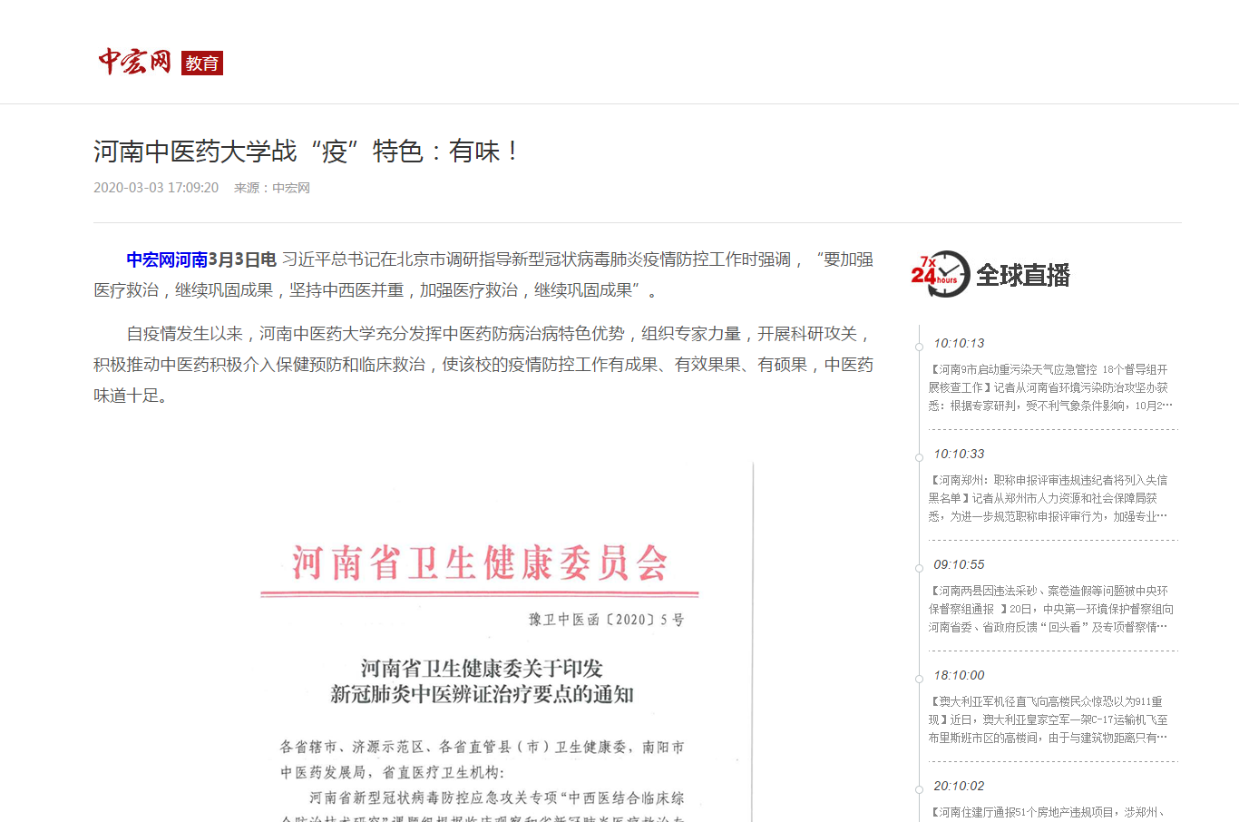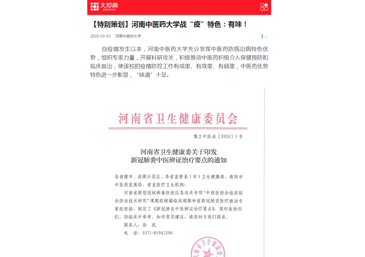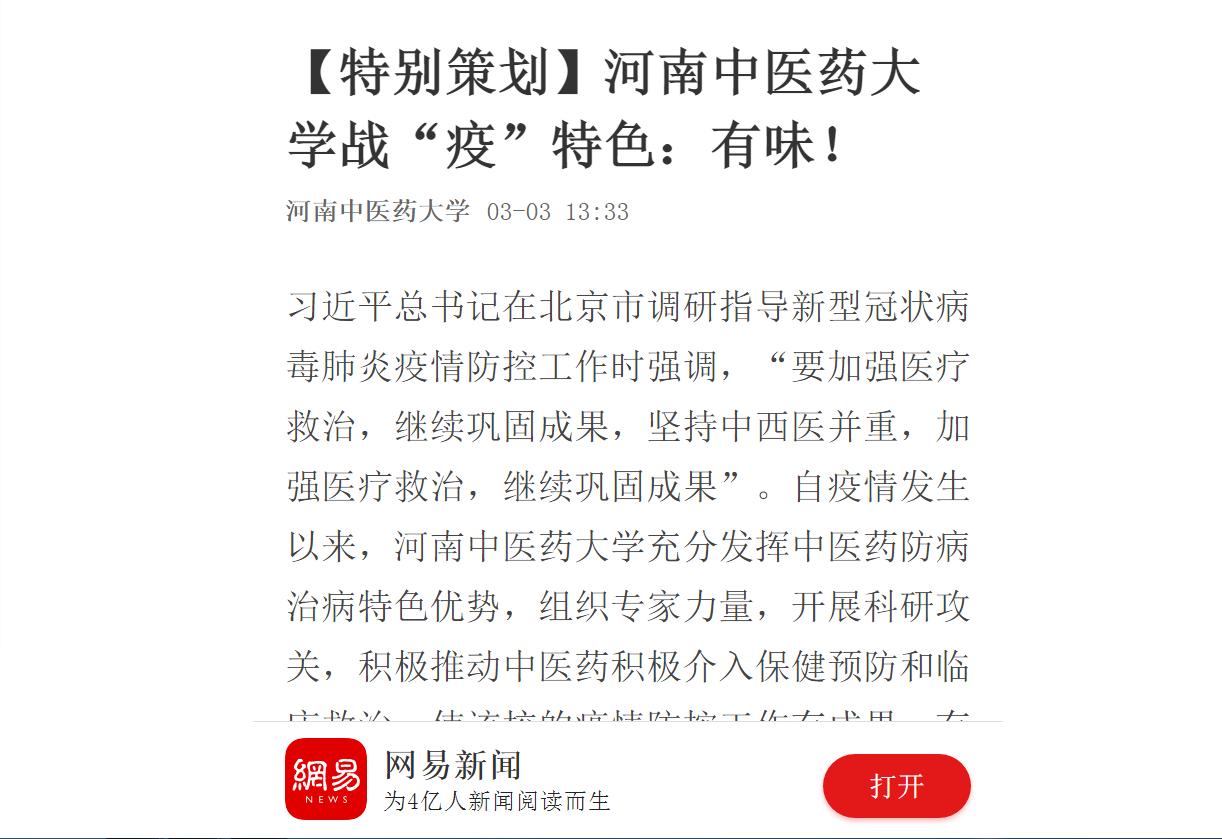 2020年3月3日,中宏网、大河网、网易新闻对我校有味的战“疫”特色进行报道。
