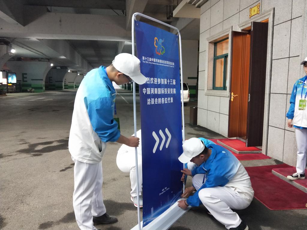 本网讯(文图/郭薇)2019年4月8日-11日,由河南省人民政府、中国国际贸易促进委员会、中国人民对外友好协会主办,商务部投资促进事务局、省商务厅等有关单位共同承办的第十三届中国(河南)国际投资贸易洽谈会在郑州隆重举行,我校111名大学生志愿者参与了此次活动的志愿服务工作。