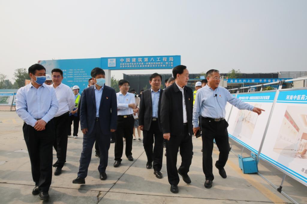 本网讯(文/何世桢 图/郭艺聪)2021年5月20日,副省长戴柏华带领省政府副秘书长赵学东、省卫生健康委主任阚全程、省发展改革委副主任刘琦,省政府办公厅、省发展改革委、省卫生健康委有关同志一行,到我校一附院新院区调研指导中医药传承发展、新冠肺炎疫情防控、重点项目建设等工作。校长许二平,中牟县委书记潘开名、县政协副主席朱怀召,一附院党委书记翟剑波、院长朱明军、纪委书记段其波、党委副书记孟林及相关科室负责人参加调研。