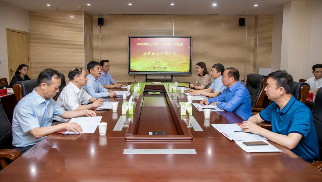 王广宇在致辞中讲述了自己对于中医药事业发展饱含的初心与情怀,并简要介绍了广宇集团发展历史和现状。王广宇表示,校企合作是实现科研成果转化的重要方式,希望通过此次合作,双方优势互补、合作共赢,在人才培养、科学研究、医药研发等方面进一步加强交流、深化合作,激发企业活力,共同为中医药事业发展做贡献。