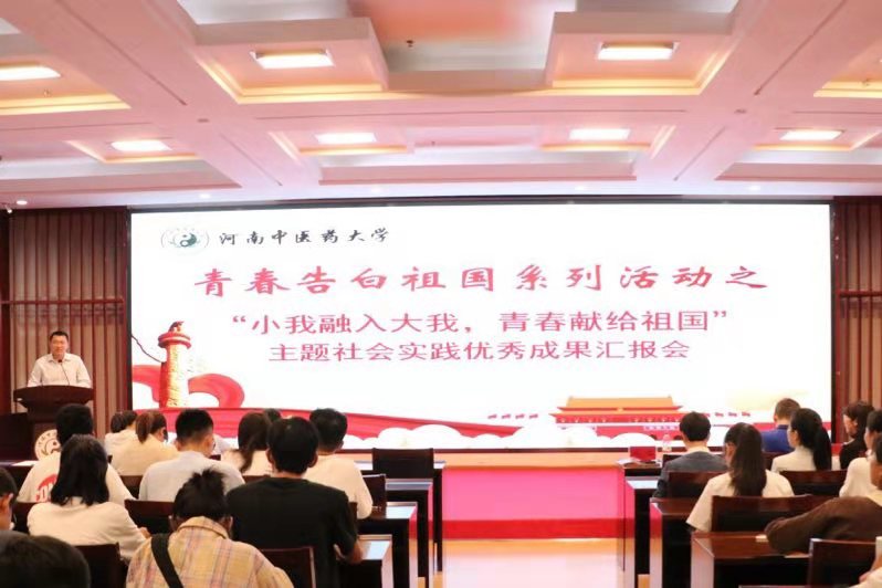会上,六位学生代表分享了自己的实践故事,他们从各自的视角,分别讲述了深入基层开展医疗服务活动,为基层群众送医送药送温暖;参加“中医学者寻根之旅”,与其他中医院校学子交流学习,传承中医药文化;在当地小学为留守儿童辅导功课,开阔视野;担任第十一届全国少数民族传统体育运动会志愿者等难忘经历,她们在实践中加深了对志愿服务精神和当代青年使命担当的理解。六位同学呼吁新时代青年,要多走进基层,走入人心,让青春在实践中闪光。校团委书记高磊对各位同学认真扎实开展社会并取得丰硕实践成果给予充分肯定,希望大家在实践中领悟成才之道,贡献青春力量,坚定理想信念,勤奋学习,努力拼搏,以实际行动向新中国成立70周年献礼。