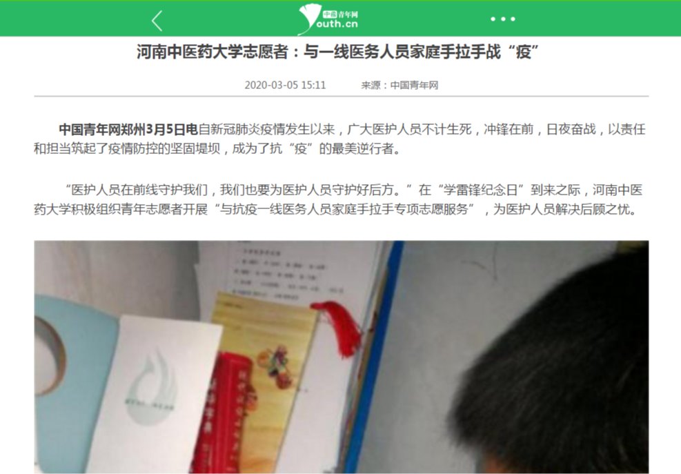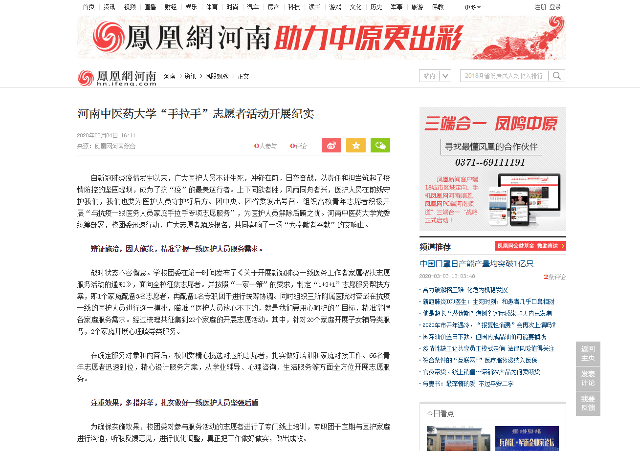 2020年3月4日-5日,中青网、凤凰网对我校“手拉手”志愿者活动进行报道。