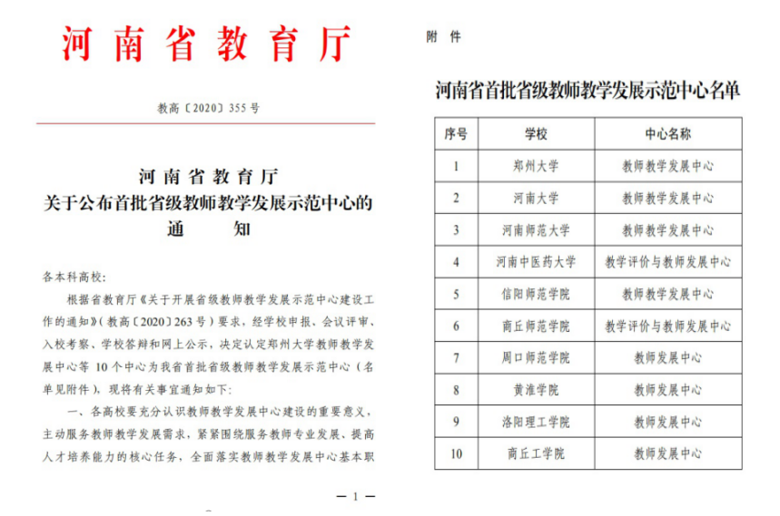 本网讯(文图/段涛)近日,河南省教育厅下发《关于公布首批省级教师教学发展示范中心的通知》,我校教学评价与教师发展中心被评为“首批河南省教师教学发展示范中心”。