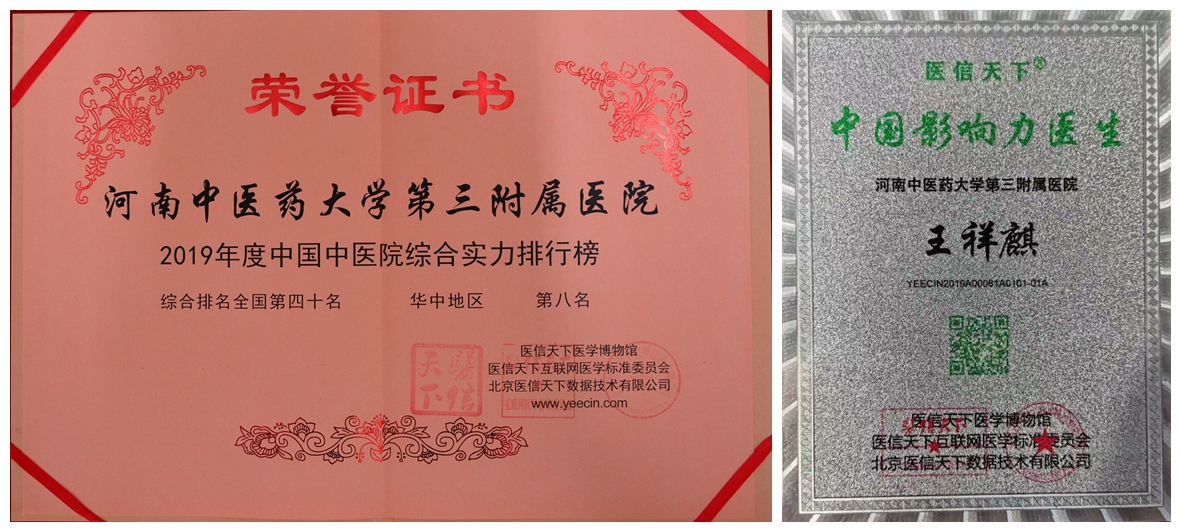 会上发布了2019年中国中医院综合实力排行榜综合榜、中医内科榜、中医外科榜,并评选出了中医专业“中国影响力医生”。三附院在中国中医院综合实力排行榜中排名全国第四十名、华中地区第八名,王祥麒教授荣获中医专业最具“中国影响力医生”称号。