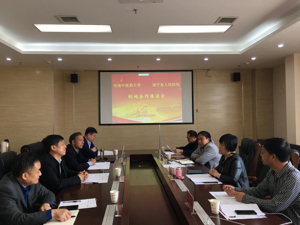 本网讯(文图/常征辉)2019年4月24日上午,我校与洛宁县校地合作座谈会在教学实验综合楼BS705会议室召开。校长许二平,校党委委员、副校长徐江雁,洛宁县人民政府副县长韩丽莉出席了会议,校长办公室、教务处、科技处、药学院以及洛宁县卫健委、园艺局、人民医院、中医院、大艾实业有限公司、宁竹药业有限公司等相关部门和单位负责人参加了座谈。徐江雁主持会议。