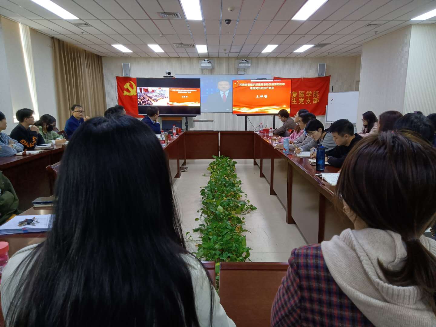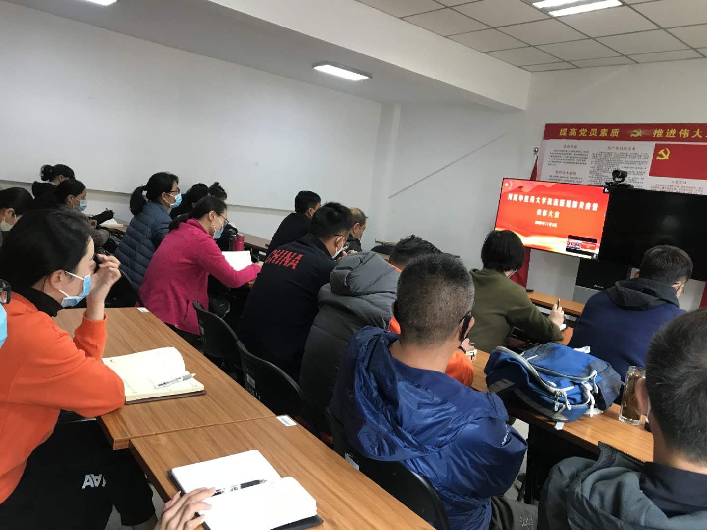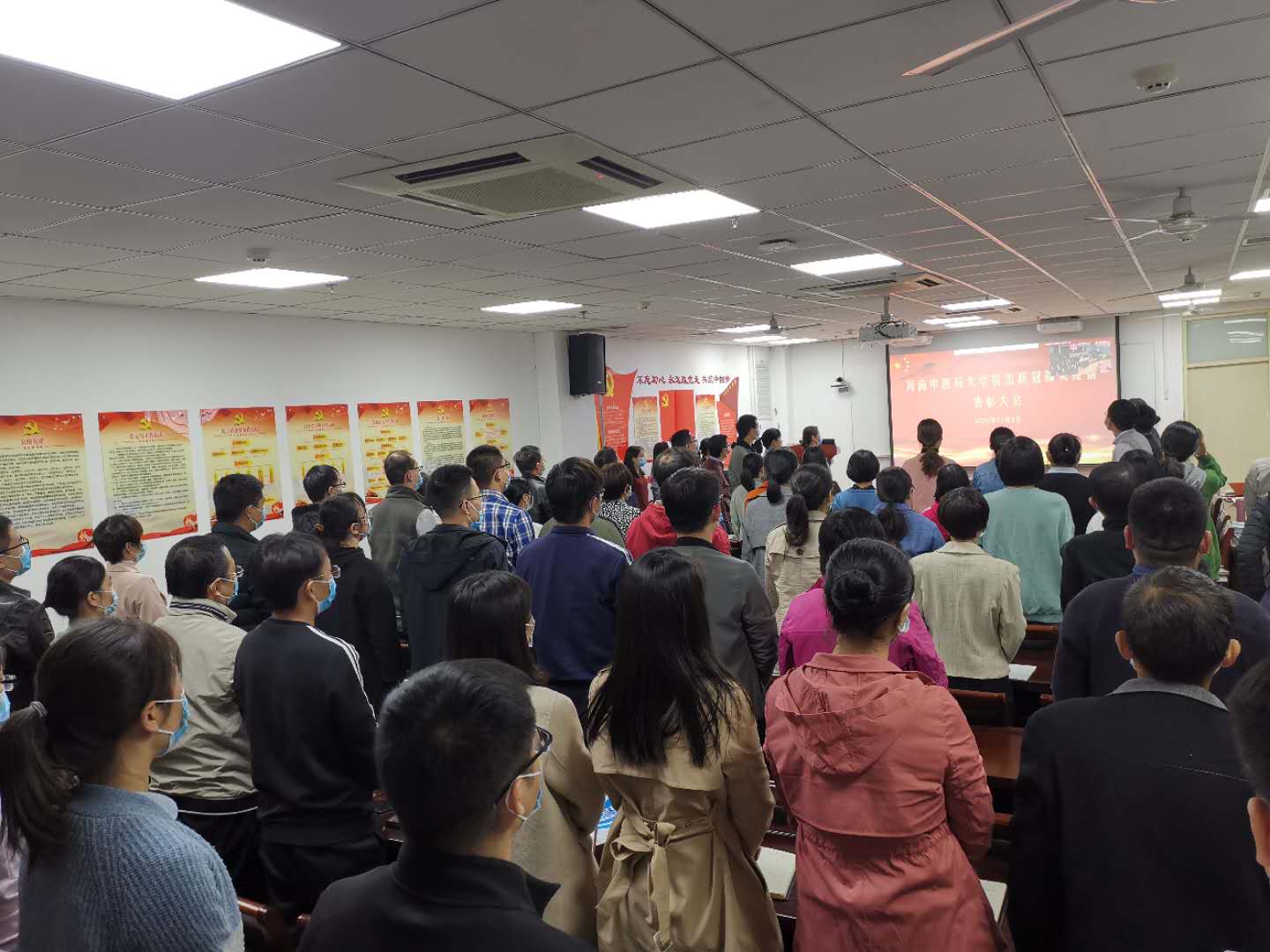 编者按:2020年11月3日,我校抗击新冠肺炎疫情表彰大会在图书馆第一报告厅隆重举行。经过精心组织,在学校设立的1个主会场、17个分会场、9个会议室、123个教室内,25个基层党组织的1400余名党员干部和教职员工、1.4万多名学生通过视频直播收看抗击新冠肺炎疫情表彰大会。现将17个分会场收看表彰大会现场情况汇总发布。