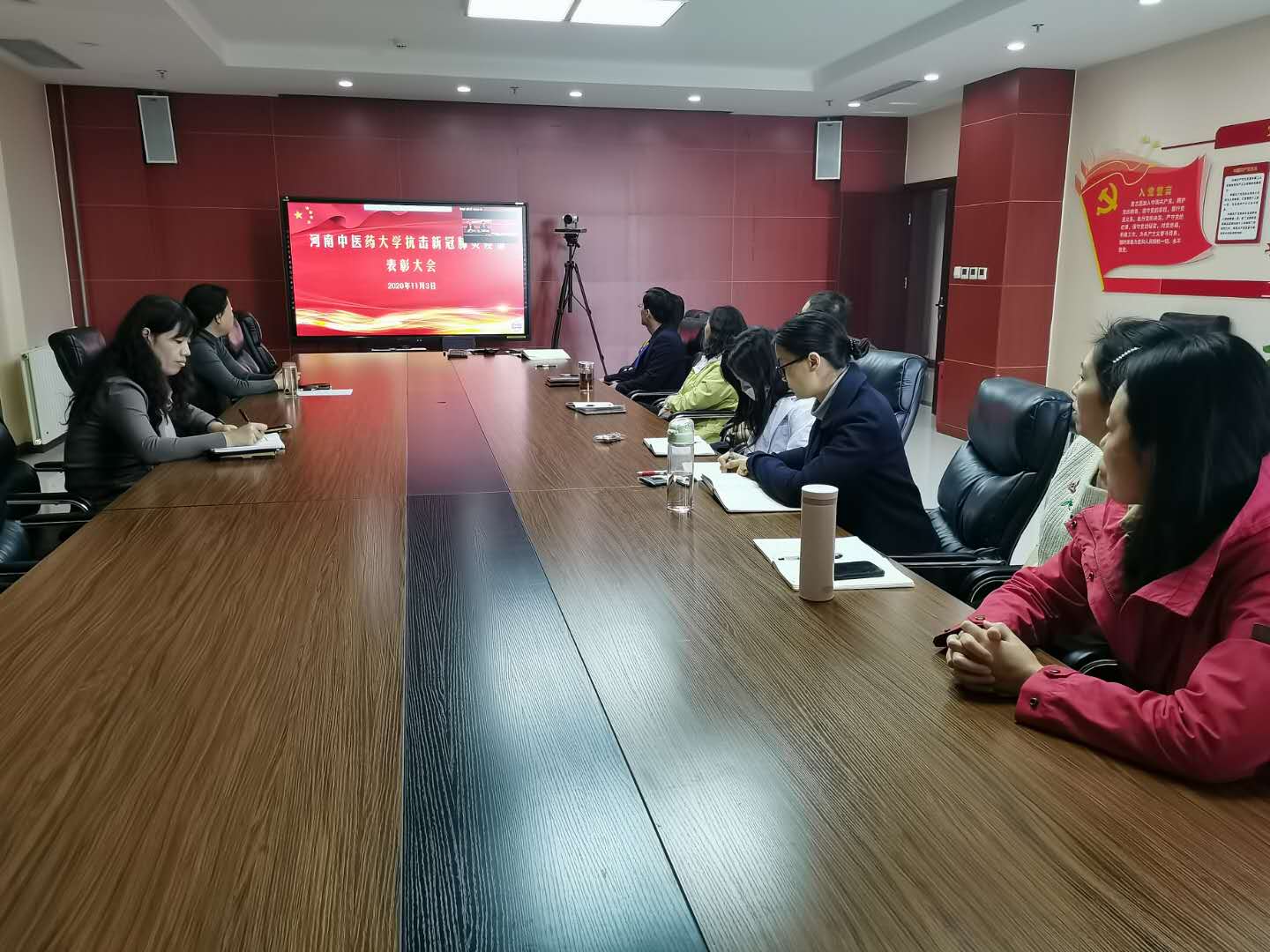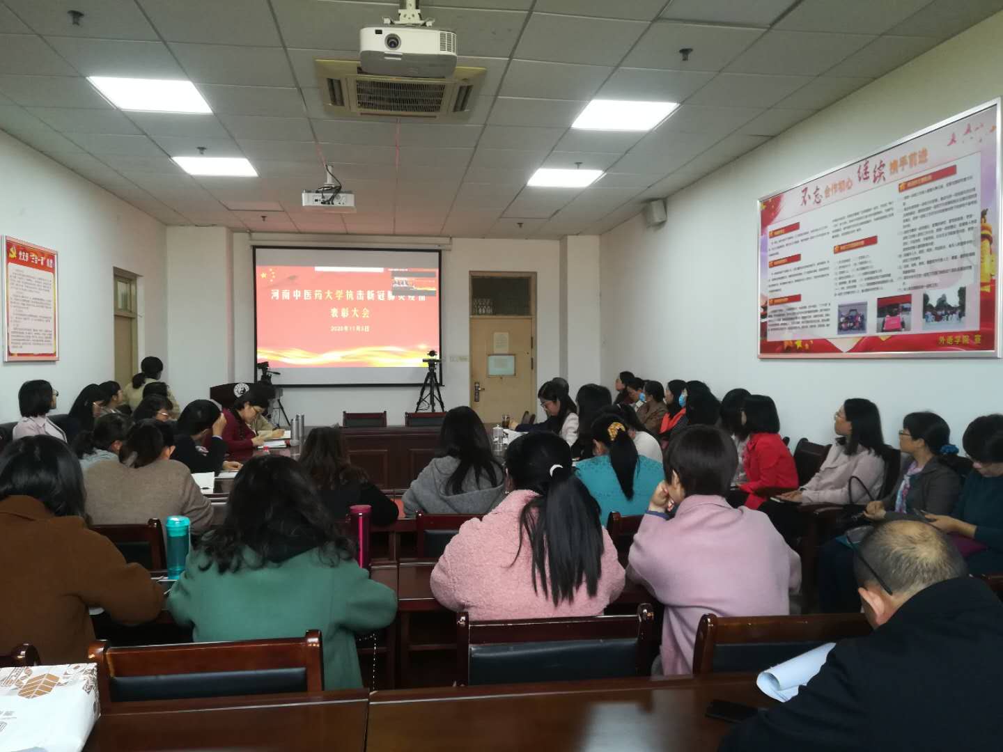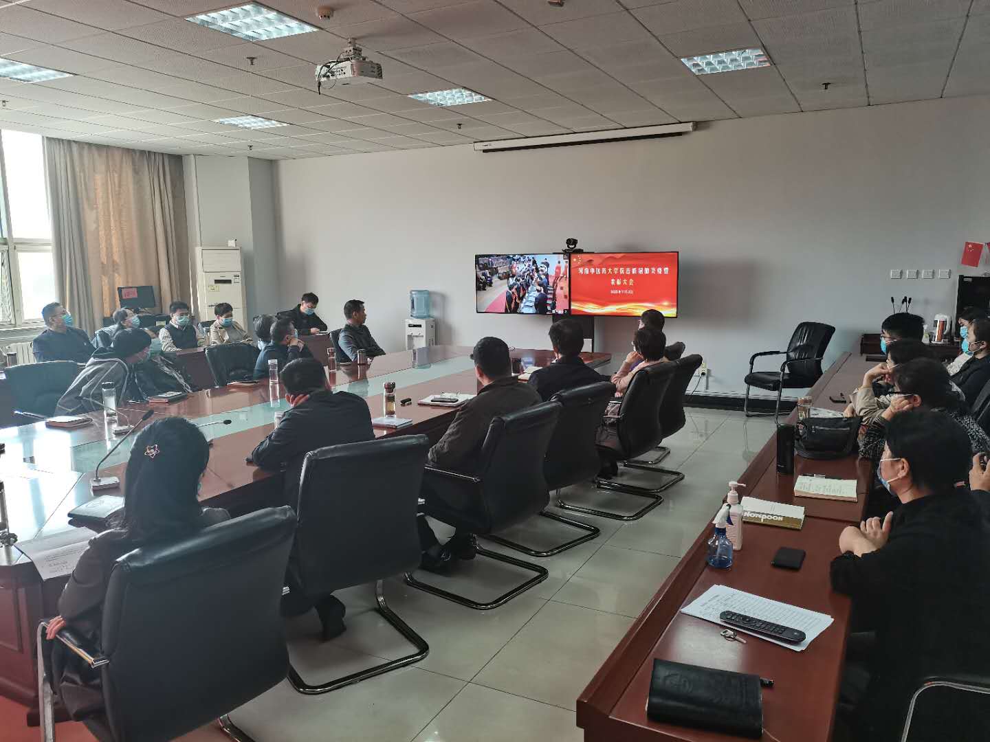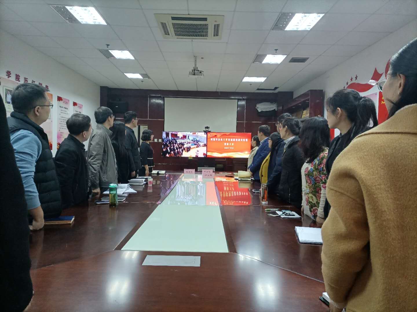 编者按:2020年11月3日,我校抗击新冠肺炎疫情表彰大会在图书馆第一报告厅隆重举行。经过精心组织,在学校设立的1个主会场、17个分会场、9个会议室、123个教室内,25个基层党组织的1400余名党员干部和教职员工、1.4万多名学生通过视频直播收看抗击新冠肺炎疫情表彰大会。现将17个分会场收看表彰大会现场情况汇总发布。