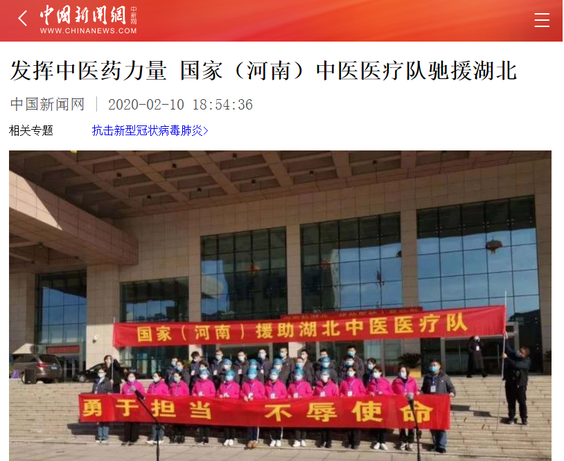编者按:2020年2月10日-11日,中国日报中文网、中国新闻网、新浪新闻对我校援助武汉国家中医医疗队(河南队)启程进行报道。现将中国新闻网全文刊发如下: