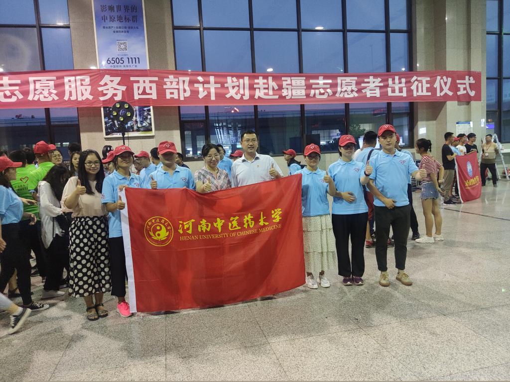 本网讯(文图/戚帅朋)2019年7月22日,我校团委书记高磊与我校2019年西部计划志愿者参加河南省大学生志愿服务西部计划出征仪式。团河南省委副书记、省大学生志愿服务计划项目管理办公室主任李丽为赴疆志愿服务队授旗,并对今年河南省的西部计划志愿工作做了总结,表达了对志愿者们的殷切希望。