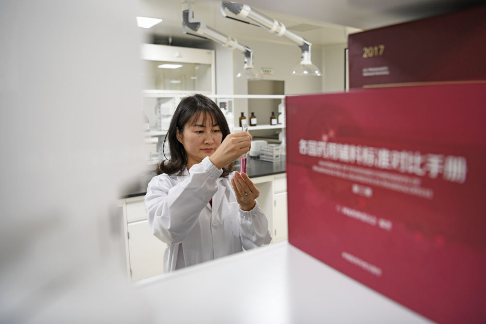 2018年10月23日,广东珠海横琴新区粤澳合作中医药科技产业园研发人员倪静云在实验室工作。