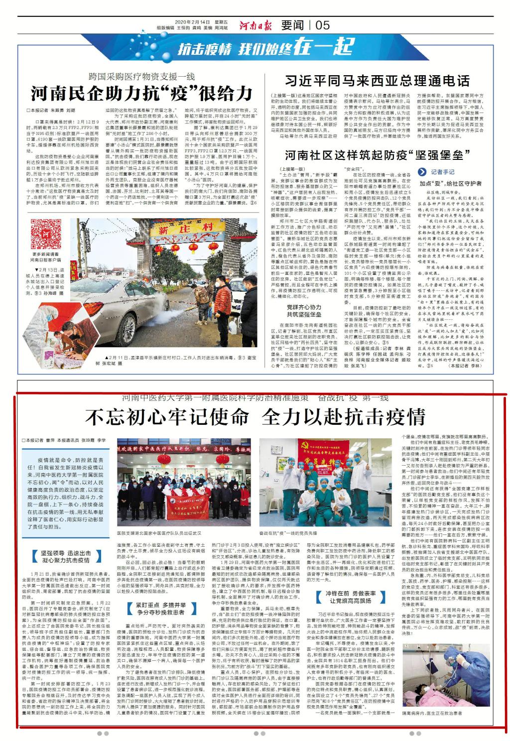 编者按:2020年2月14日,河南日报对我校一附院持续奋战在抗击疫情的第一线进行报道。现将全文刊发如下: