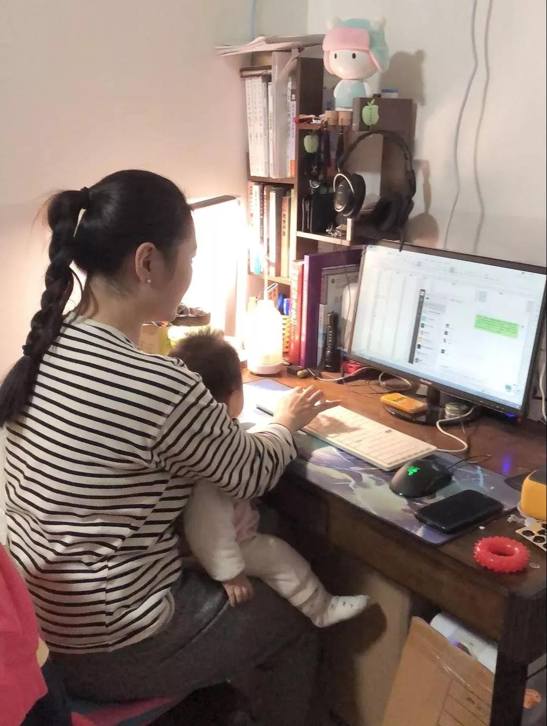 亚盈app(中国)官方网站辅导员郭铮带着未满周岁的孩子做好学生疫情统计