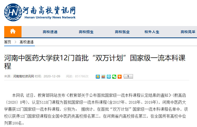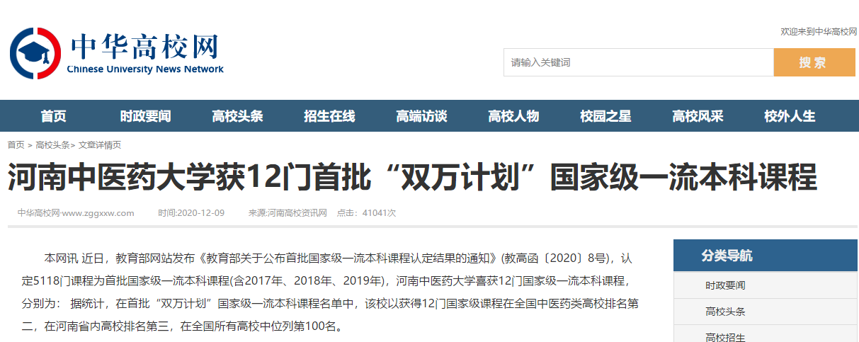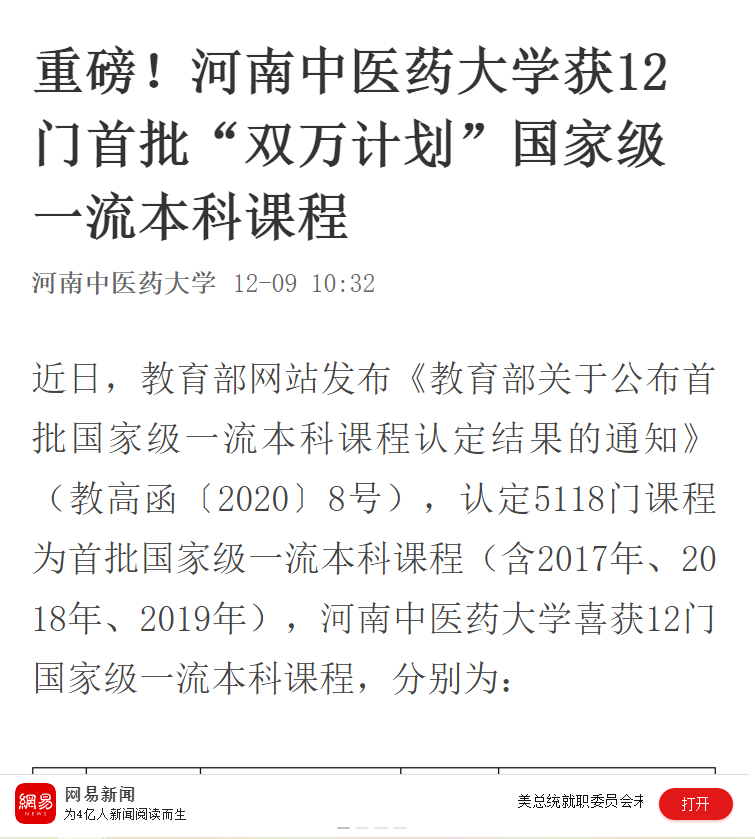 编者按:2020年12月9日,中国网、中华高校网、大河网、河南高校资讯网、网易新闻、新浪新闻等媒体对我校12门课程入选首批国家级一流本科课程进行报道。