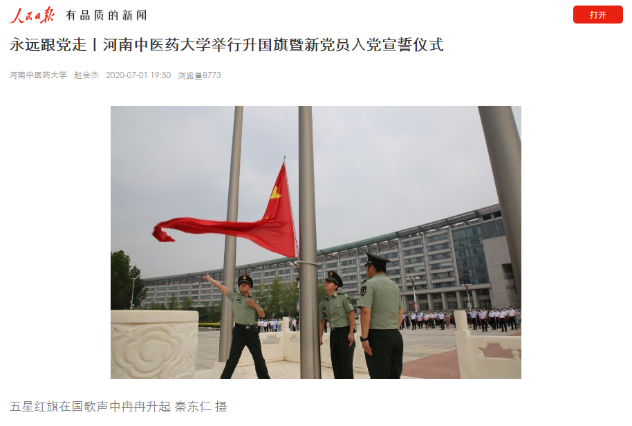 2020年7月1日,人民日报对我校举行升国旗暨新党员入党宣誓仪式进行报道。