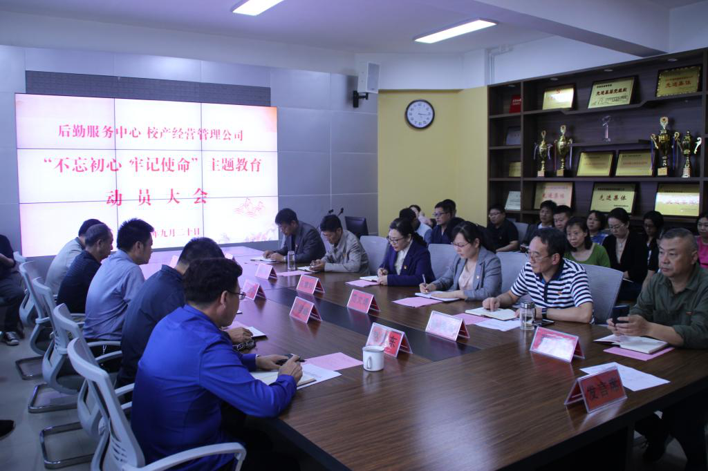 2019年9月20日下午,后勤服务中心、校产经营管理公司联合召开“不忘初心、牢记使命”主题教育动员会,学校主题教育第五指导组组长解建新,指导组成员马慧玲、范文博,部门班子成员、科以上干部参加会议。会议由校产经营管理公司直属党支部书记叶险峰主持。