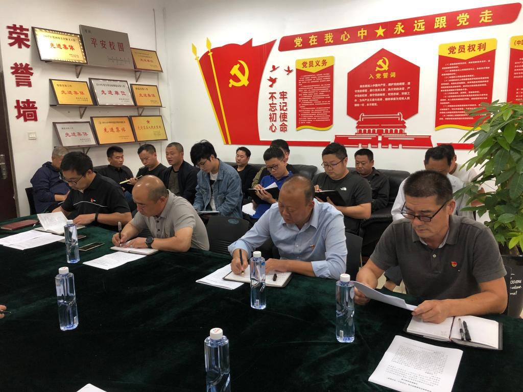 会上,后勤服务中心优秀党员代表万明海作了“立足岗位 勇于担当”典型发言,他用质朴的语言表达了一名普通党员“心中有党、心中有责、心中有戒”的初心情、使命感。后勤服务中心党总支书记陈德宝在动员讲话中要求全体党员干部,要深刻认识开展主题教育的重大意义,把搞好主题教育与全面从严治党结合起来,确保全面从严治党进一步向基层延伸、向纵深发展;要将高标准高质量贯穿主题教育全过程,把主题教育各项工作落实、落细,确保主题教育取得实效;要以开展主题教育为契机,坚决贯彻学校党委的各项决策部署,以党的建设高质量推动后勤服务中心、校产经营管理公司服务工作高质量,助力学校转型发展。