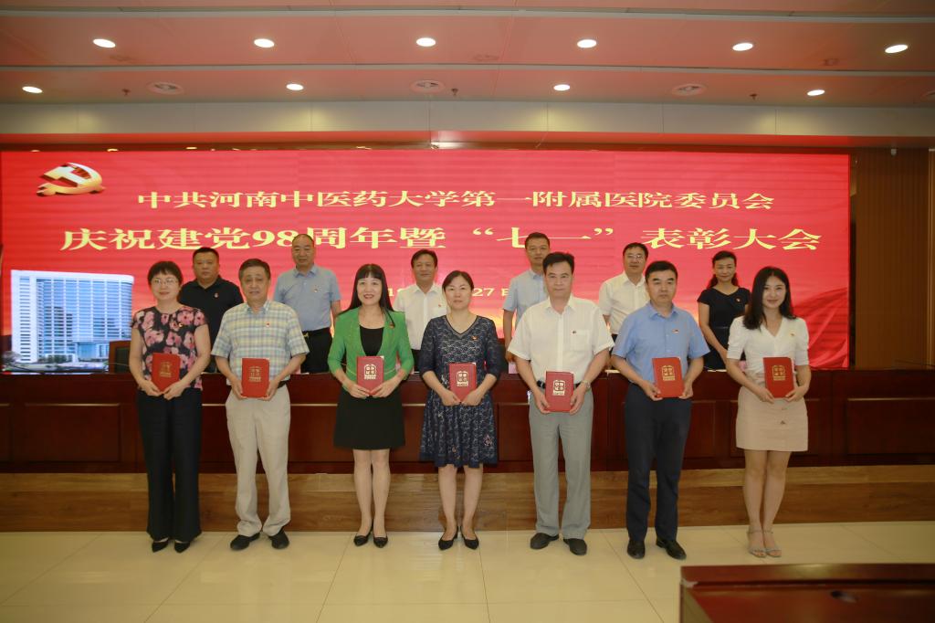 本网讯(文/焦钧 图/何世桢 郭艺聪)为热烈庆祝中国共产党建党98周年,表彰在医院发展建设中涌现出的先进基层党组织、优秀共产党员、优秀党务工作者,进一步提振士气、鼓舞干劲,激发广大党员干部职工凝心聚力、扎实工作、为医院发展贡献力量,2019年6月27日下午,一附院在15楼会议室召开庆祝建党98周年暨“七一”表彰大会。一附院在郑党委领导、全体党总支书记、支部书记、科室主任以及受表彰的先进个人参加了会议。会议由院党委副书记张晓东主持。