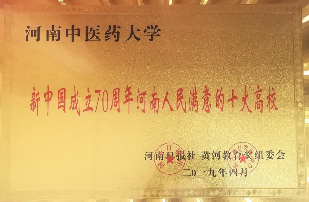 我校荣获“新中国成立70周年河南人民满意的十大高校”