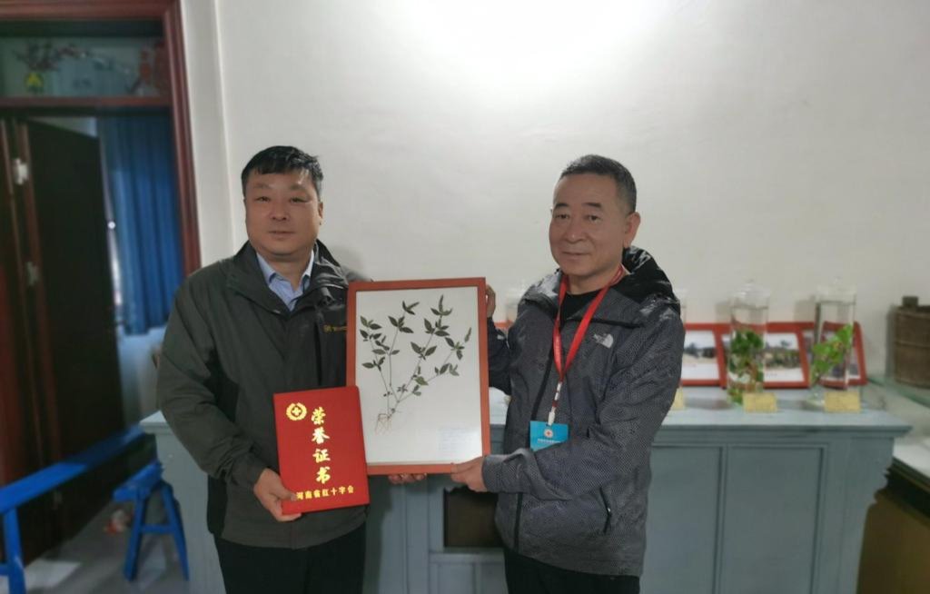 2020年10月13日上午10点,捐赠仪式在薄壁镇卫生院平甸村革命老区卫生站举行。省红十字会主任侯福元,河南鼎信生物塑化技术有限公司总经理冯辉,新乡市、辉县市红十字会领导,我校工会副主席刘延江,药学院副院长董诚明及基础医学院6名专家志愿者共同参加捐赠仪式。仪式上,我校向薄壁镇卫生院共捐赠100份中药植物标本和10瓶中药水浸标本。