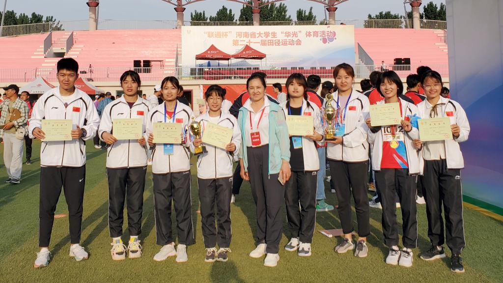 “河南省大学生田径运动会”是我省高校重要学生体育赛事之一。学校历来高度重视大学生体育工作,体育学院全力做好训练备赛工作,自去年11月组队训练以来,全体教练员和运动员发扬攻坚克难、百折不挠、顽强拼搏、坚韧图成的精神品格,最终在金牌数和团体总分双项成绩上均创造了我校近20年田径赛事的最高记录。充分展现了河中医人良好的竞技水平和精神风貌,激发了师生们爱校、荣校的自豪感和荣誉感,用实际行动和优异成绩为学校的转型发展做出积极贡献,为庆祝党的百年华诞献礼!