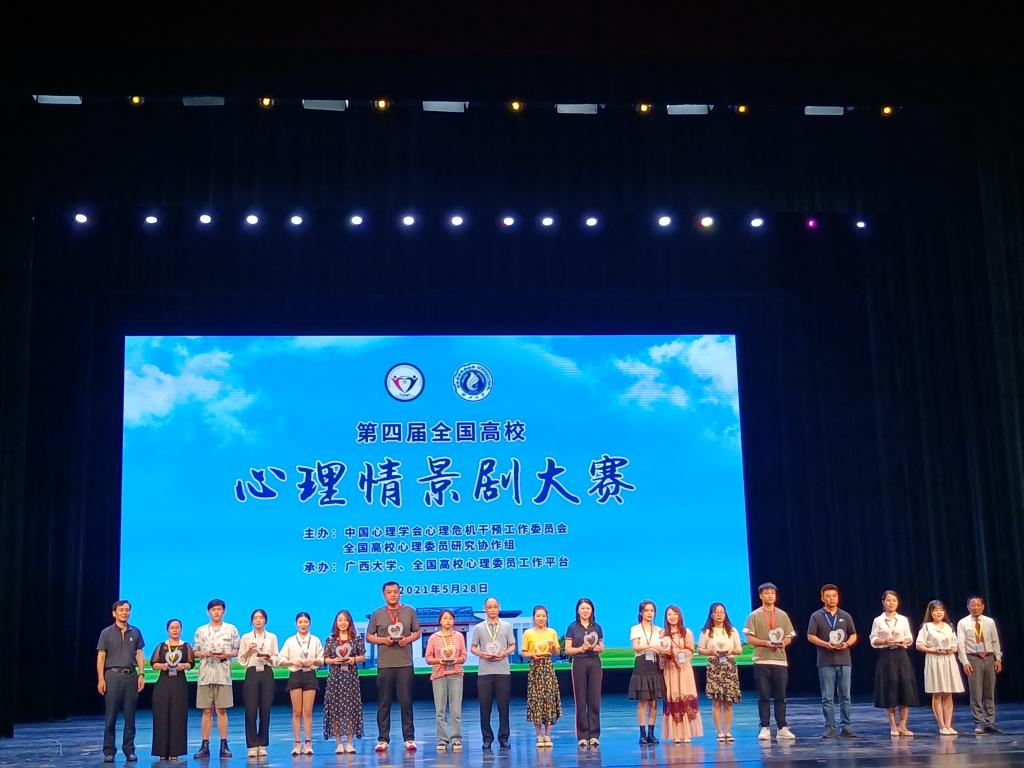 本网讯(图/文 郭彦霞 张丹丹)2021年5月28-29日,第四届全国高校心理情景剧大赛在广西大学举行,我校创作的心理情景剧作品《我们》在现场决赛中荣获二等奖。