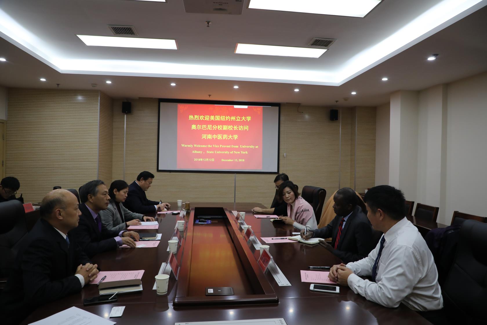 本网讯(文图/李敬平)2018年12月12日,美国纽约州立大学奥尔巴尼分校副校长哈维·查尔斯访问我校,校党委委员、副校长徐江雁在BS705会见了来宾并就双方合作事宜进行洽谈,学校相关职能部门负责人参加了会谈。