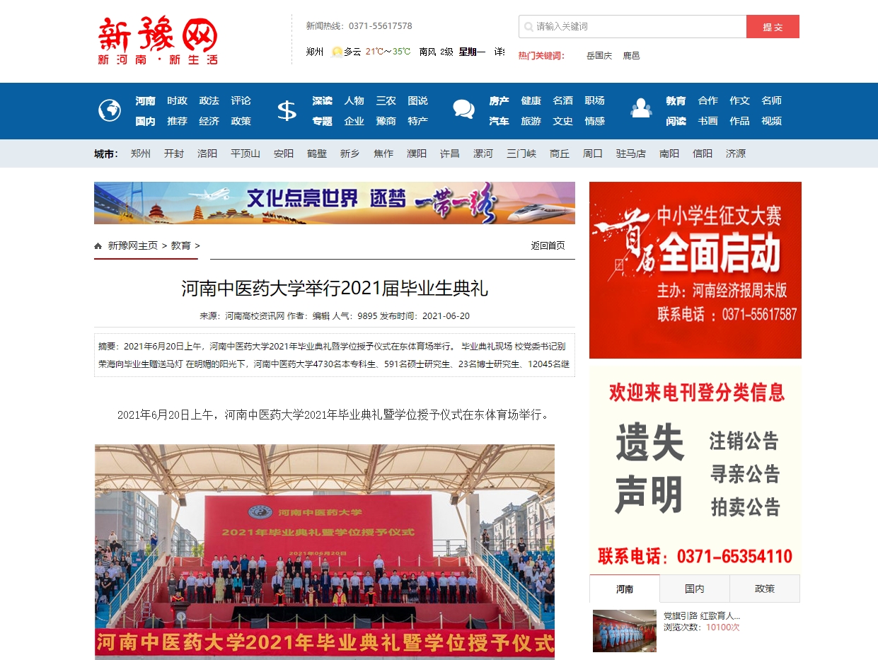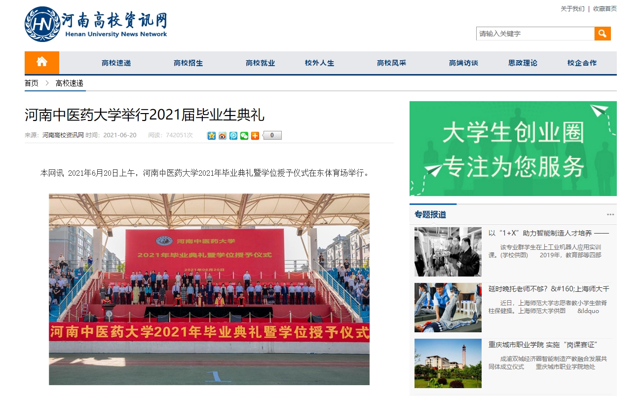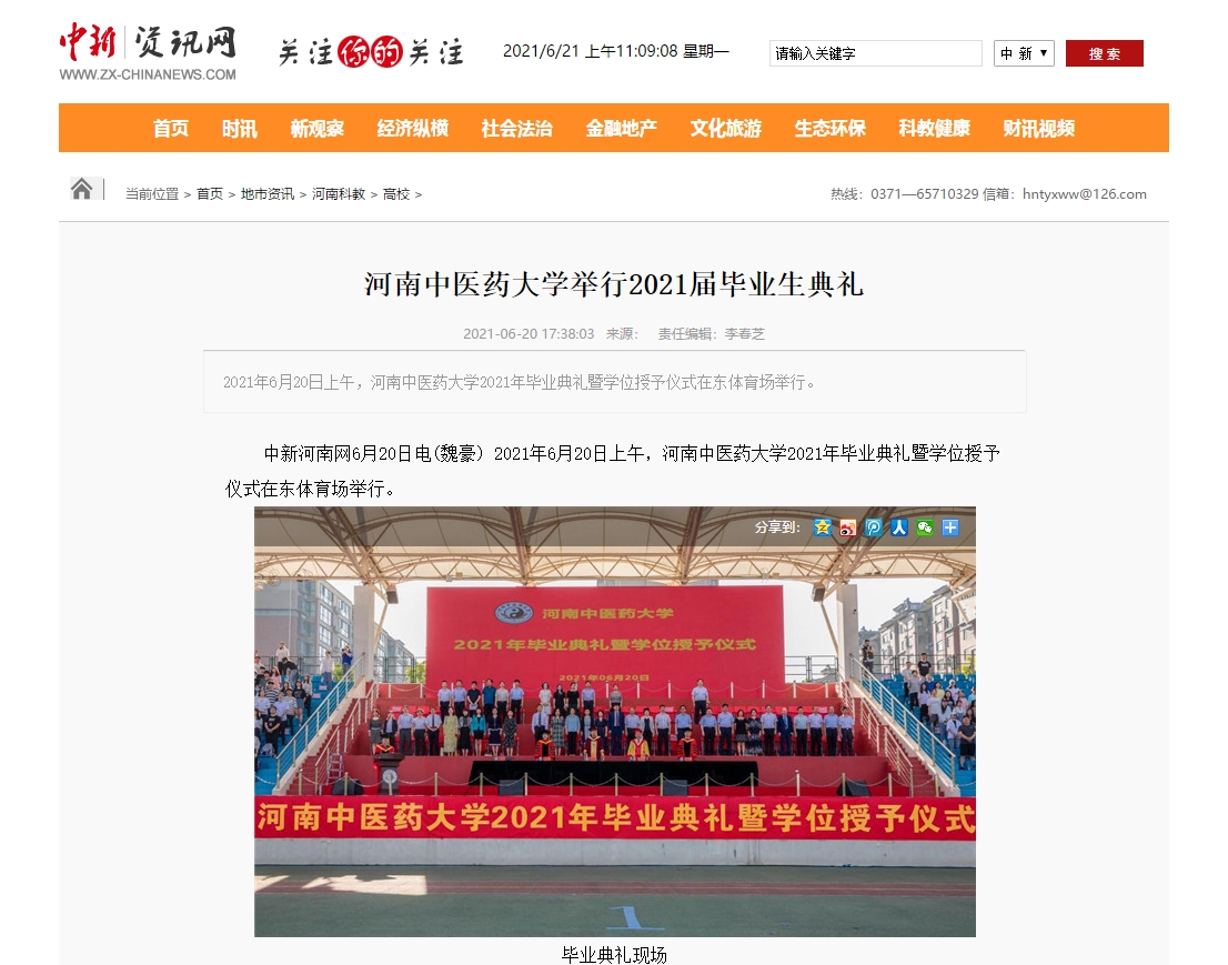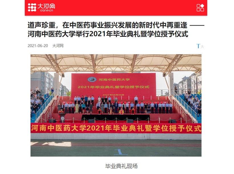 编者按:2021年6月20日至21日,中华网、中华高校网、中新资讯网、大河网、河南高校资讯网、新豫网、河南经济论坛、河南高校行等多家媒体对我校举行2021届毕业生典礼进行报道。