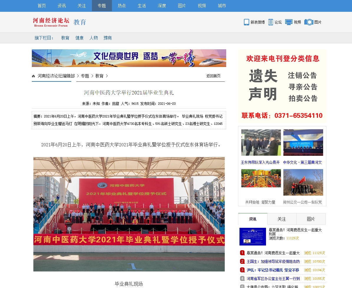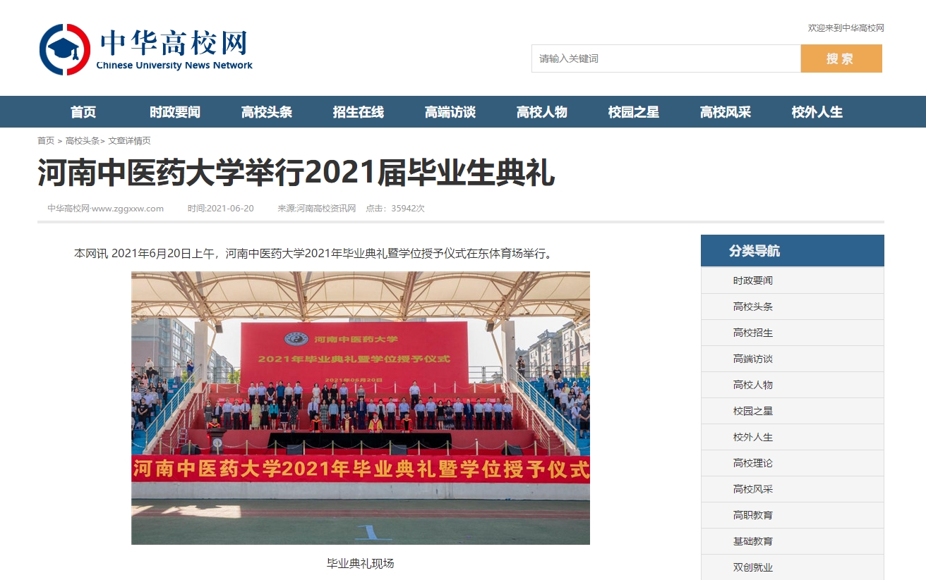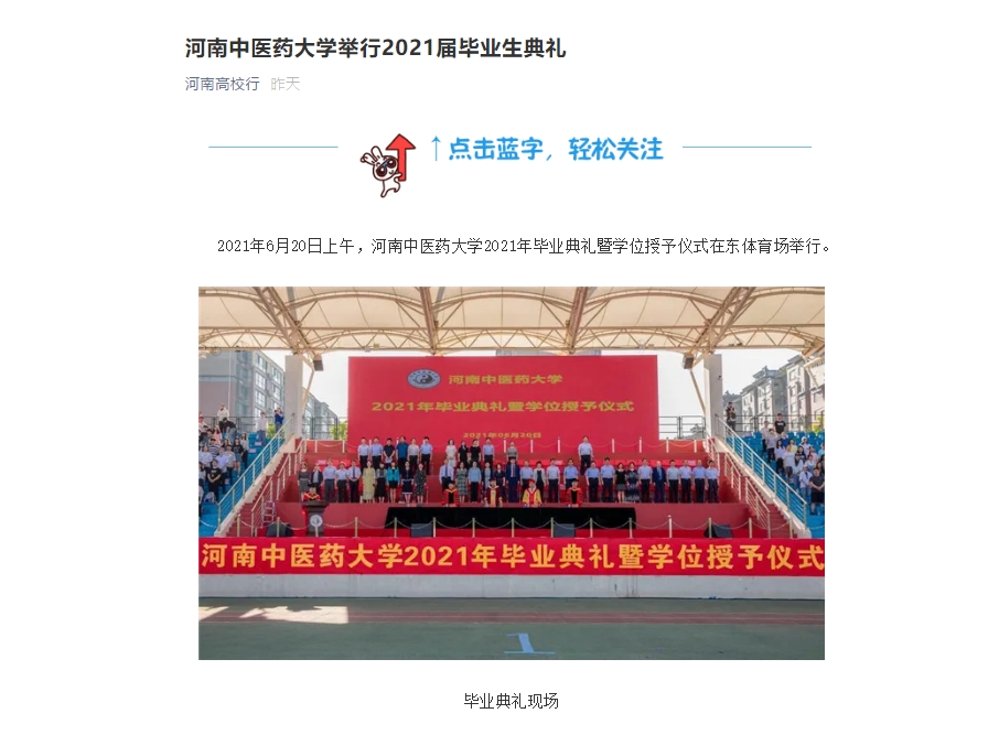 编者按:2021年6月20日至21日,中华网、中华高校网、中新资讯网、大河网、河南高校资讯网、新豫网、河南经济论坛、河南高校行等多家媒体对我校举行2021届毕业生典礼进行报道。