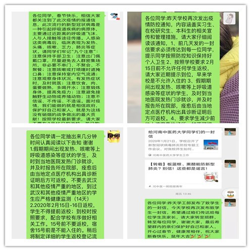 2020农历新年以来,全体学工人员在疫情面前,不断提高政治站位,强化责任担当,坚定信心、坚守职责,严格按照《亚盈app(中国)官方网站新型冠状病毒感染的肺炎疫情防控学生工作实施方案》(河中医校办【2020】1号)文件要求,做好“上传下达”,坚持24小时待命,通过倡议书、公开信等形式发出我们学工人员的声音。