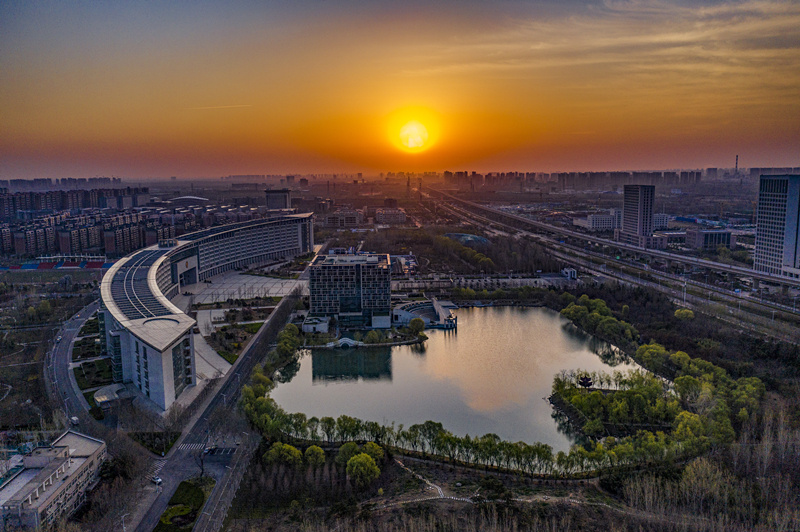 亚盈app(中国)官方网站鸟瞰图:天际霞光入水中,水中天际一时红。 秦东仁 摄