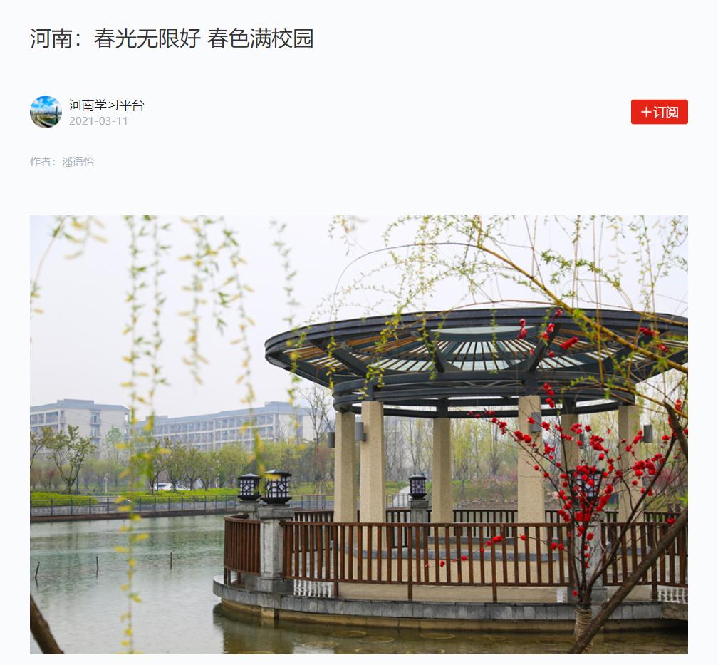 编者按:2021年3月11日,学习强国对我校校园春色进行报道。现将部分文图转发如下: