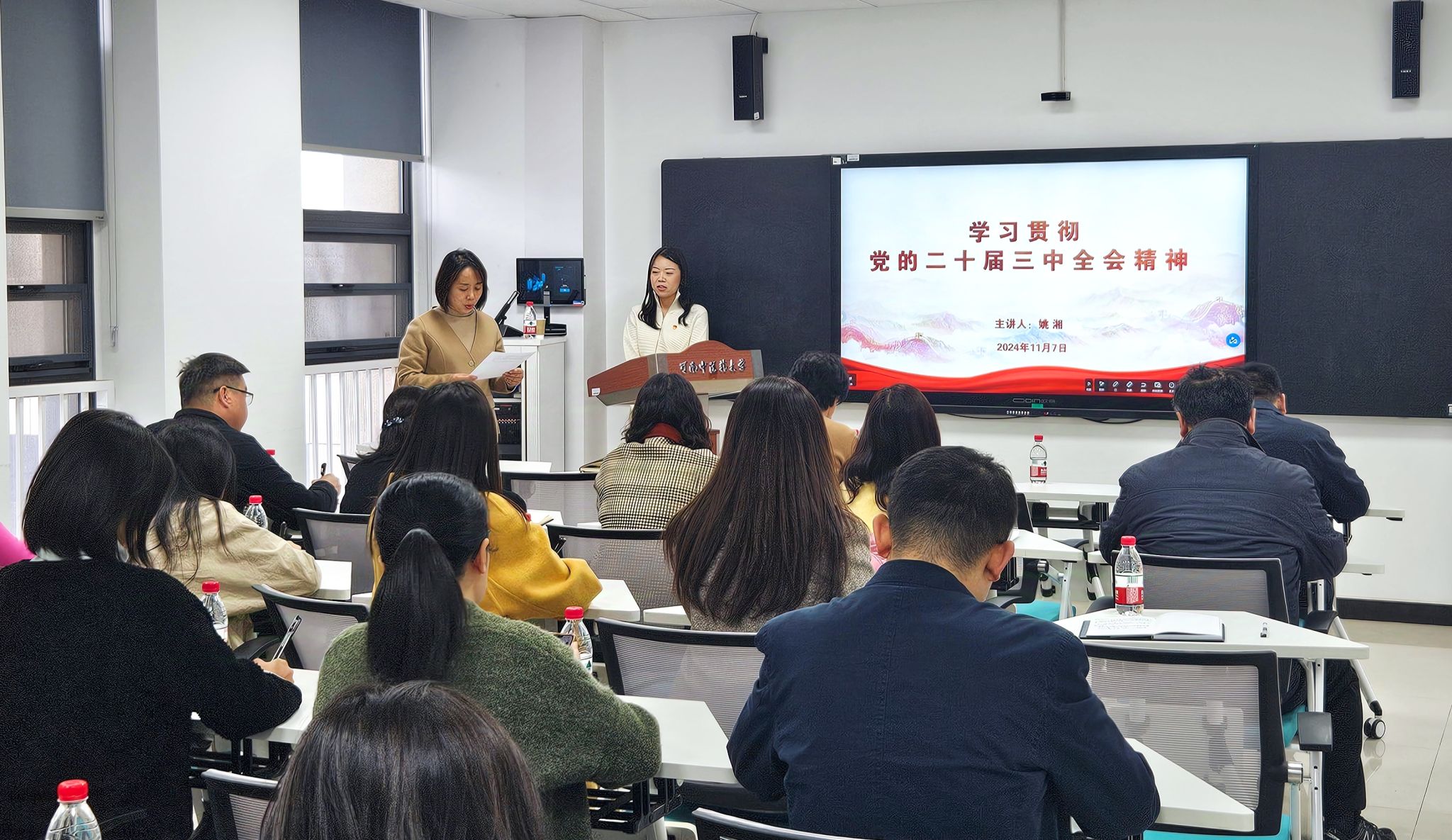 本网讯(文/图 孙睿敏)为深入学习贯彻党的二十届三中全会精神,2024年11月7日,审计处特邀河南省青年讲师团宣讲员姚湘老师在俊学楼A310会议室举办了党的二十届三中全会精神专题宣讲。计划财务处处长高爽、国有资产管理处处长徐里以及各部门党员代表参加,会议由审计处处长程萍主持。