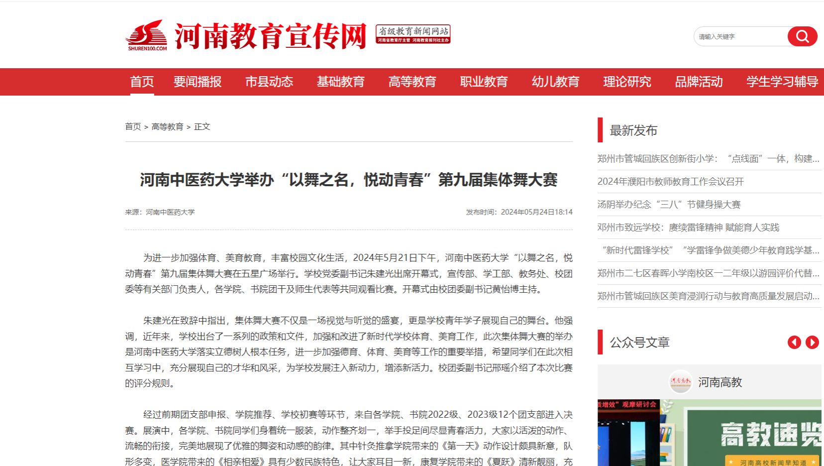 河南教育宣传网丨亚盈app(中国)官方网站举办“以舞之名,悦动青春”第九届集体舞大赛